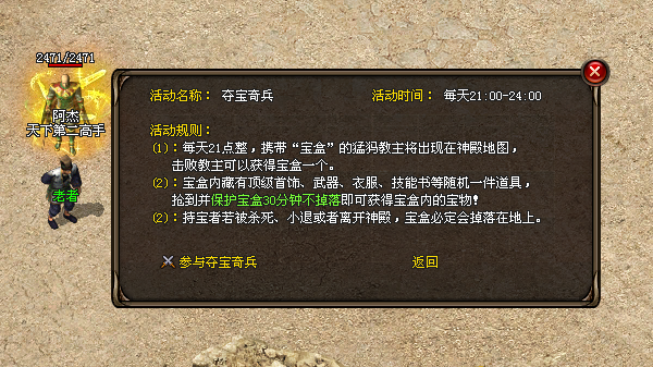 - 神威之狱:同样在开区第3天开启,每晚22:30刷新神狱之主BOSS,必掉大米,最后一击的玩家可额外获得终极装备,吸引全服玩家参与。