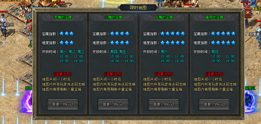 - 龙柱争夺:每日18:30开启,占领不同龙柱可获得元宝、金币或经验,团队合作尤为重要。