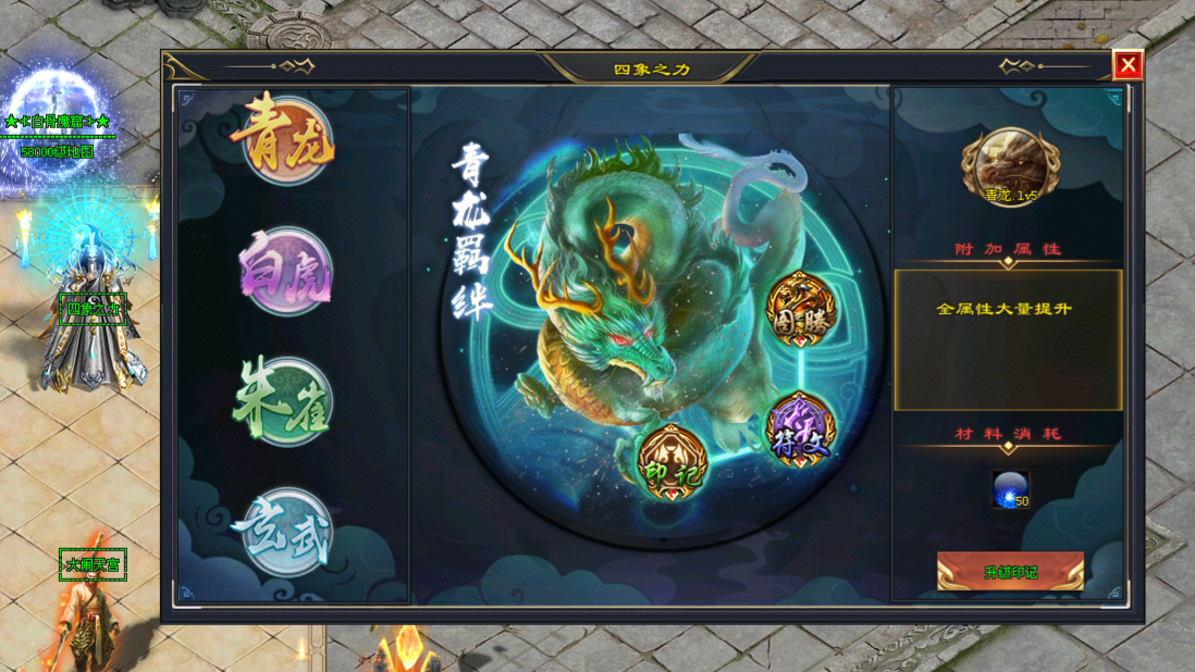- 四象之力:青龙、白虎、朱雀、玄武各司一方,提升攻击、防御、暴击与反伤能力。