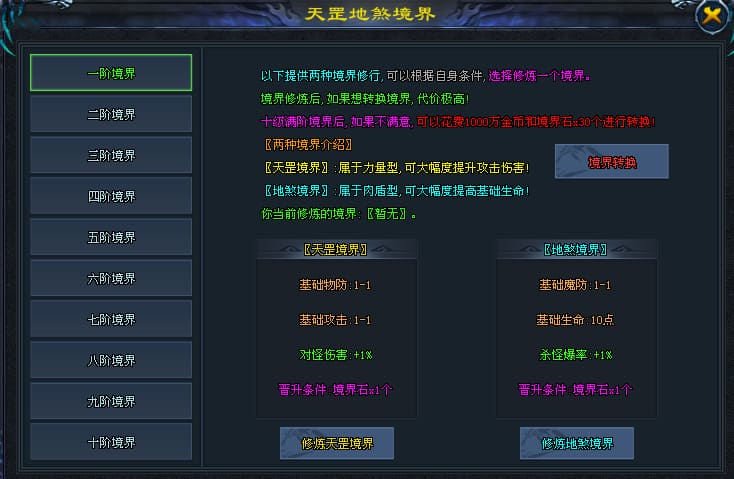 初始剑魂为“星宿鸿蒙”,可通过打怪积累能量提升等级,满级后进阶至更高阶数,最高可达8阶。每一次进阶都会为玩家带来大幅属性提升,并显著加快打怪与PK的节奏。对于时间有限的玩家,也可使用资源加速能量积累。